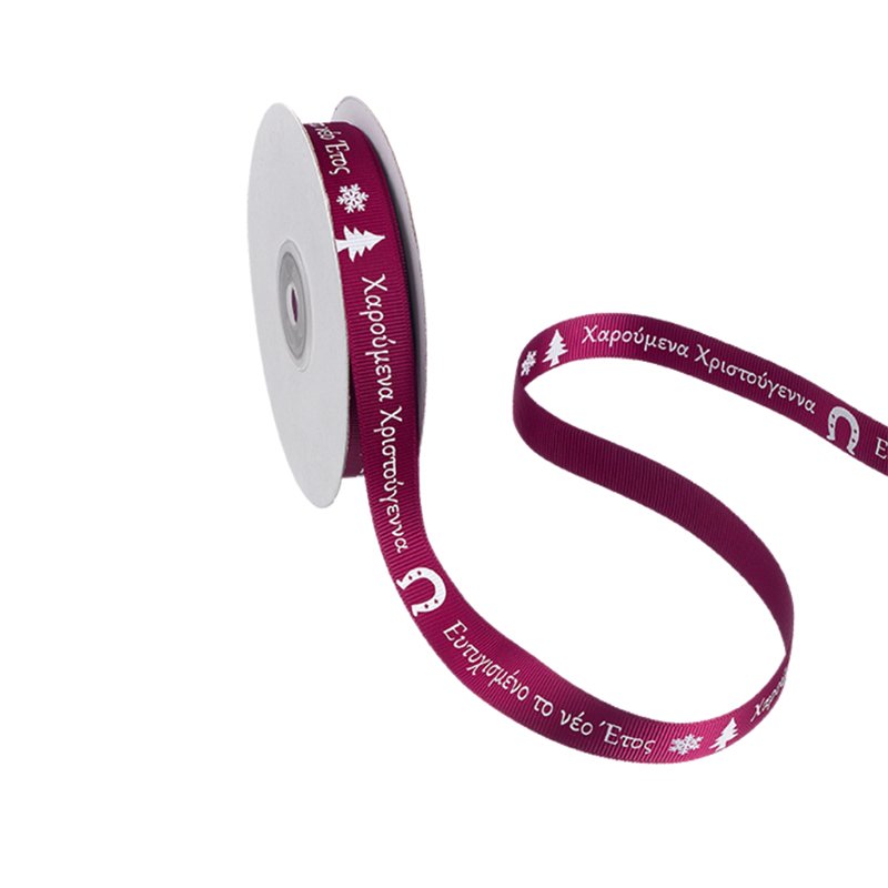 Κορδέλα γκρο σε μπορντό χρώμα με τυπωμένες ευχές για τα Χριστούγεννα και το Νέο Έτος εξαιρετικής ποιότητας.