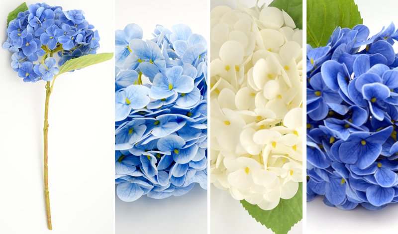 Η ορτανσία στην ανθοκομία συμβολίζει τη βαθιά κατανόηση και την ειλικρίνεια ενώ το σφαιρικό της σχήμα βοηθά στην εξισορρόπηση των γραμμών σε μια διακοσμητική σύνθεση. Ένα άγνωστο πλεονέκτημα των τεχνητών ορτανσιών μας είναι ότι το ύφασμα είναι επεξεργασμένο ώστε να μην έλκει τη σκόνη διευκολύνοντας τον καθαρισμό με ένα απλό πέρασμα. Επιπλέον ο εσωτερικός μεταλλικός σύρματος του κλαδιού επιτρέπει την τοποθέτηση σε περίτεχνες καμάρες και στεφάνια χωρίς να απαιτούνται περίπλοκα στηρίγματα. Το μέγεθος των είκοσι εκατοστών της κεφαλής είναι μελετημένο ώστε να προσφέρει τη μέγιστη κάλυψη επιφάνειας με τη χρήση λιγότερων κλαδιών εξοικονομώντας κόστος στον συνολικό στολισμό.