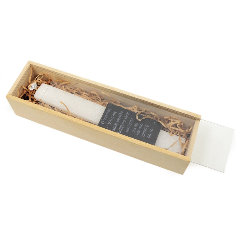 Ορθογώνιο κουτί ξύλινο για λαμπάδα σε φυσικό χρώμα με καπάκι plexiglass κατασκευασμένο από εξαιρετικής ποιότητας υλικά.