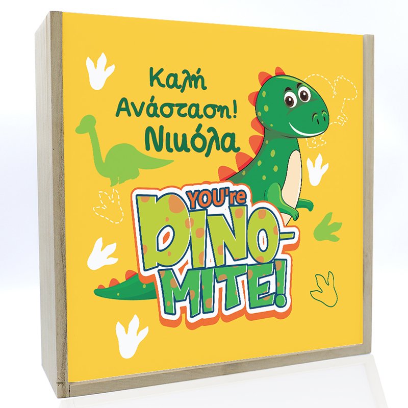 Προσωποποιημένο τετράγωνο κουτί ξύλινο σε φυσικό χρώμα με pvc διαφάνεια και εκτυπωμένο θέμα δεινόσαυρος κατασκευασμένο από εξαιρετικής ποιότητας υλικά.