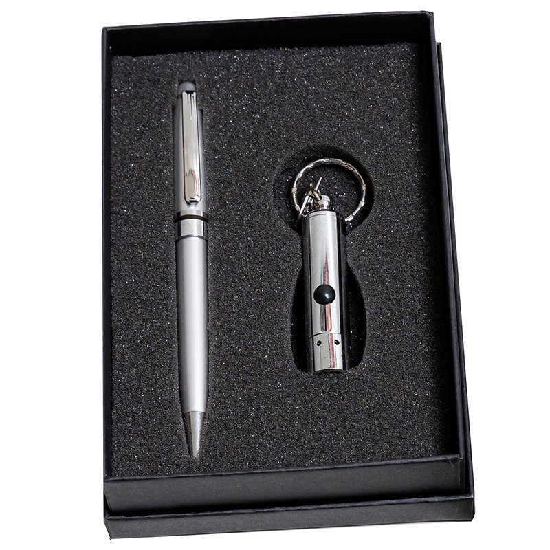 Σετ με μεταλλικό στυλό και μπρελόκ φακός εξαιρετικής ποιότητας μέσα σε κασετίνα.