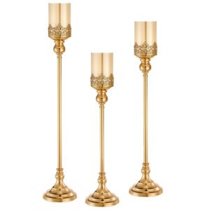 Κηροπήγια σε χρυσό χρώμα κατασκευασμένα από εξαιρετικής ποιότητας μέταλλο με ιδιαίτερα κομψό σχεδιασμό.