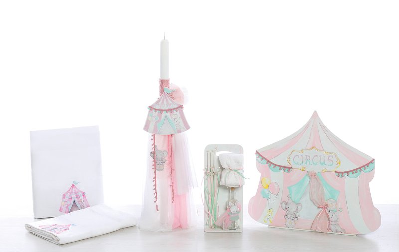 Βαπτιστικό σετ για κορίτσι, σε σχήμα τσίρκο.
