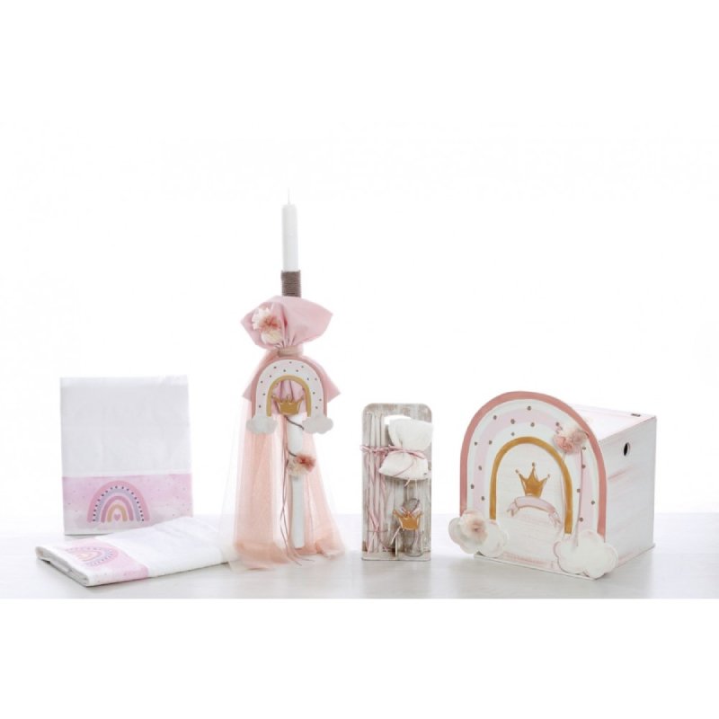 Βαπτιστικό σετ για κορίτσι, με σχέδιο ουράνιο τόξο.