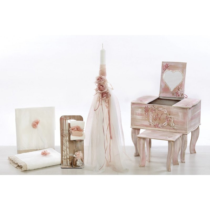 Στο ολοκληρωμένο βαπτιστικό σετ περιλαμβάνεται: 1) η κούτα, 2) η λαμπάδα, 3) το σταν λαδιού και 4) το λαδόπανο.