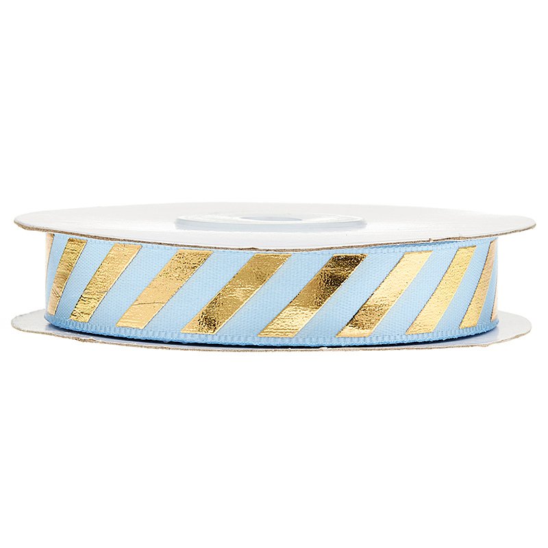 Σιέλ κορδέλα με χρυσές ρίγες εξαιρετικής ποιότητας ιδανική για δώρα, αλλά και εντυπωσιακούς στολισμούς και κατασκευές.
