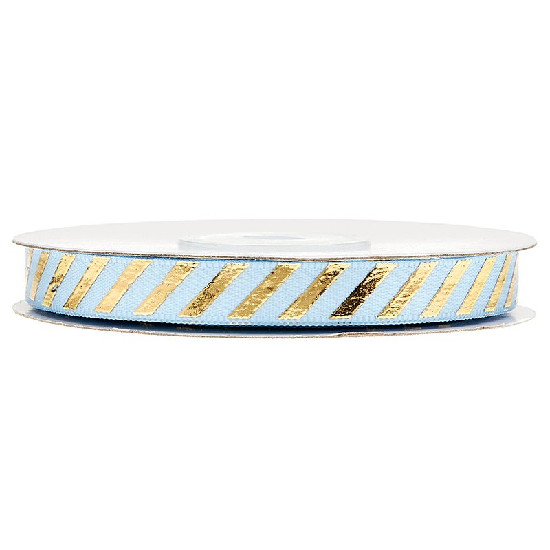 Σιέλ κορδέλα με χρυσές ρίγες εξαιρετικής ποιότητας ιδανική για δώρα, αλλά και εντυπωσιακούς στολισμούς και κατασκευές.
