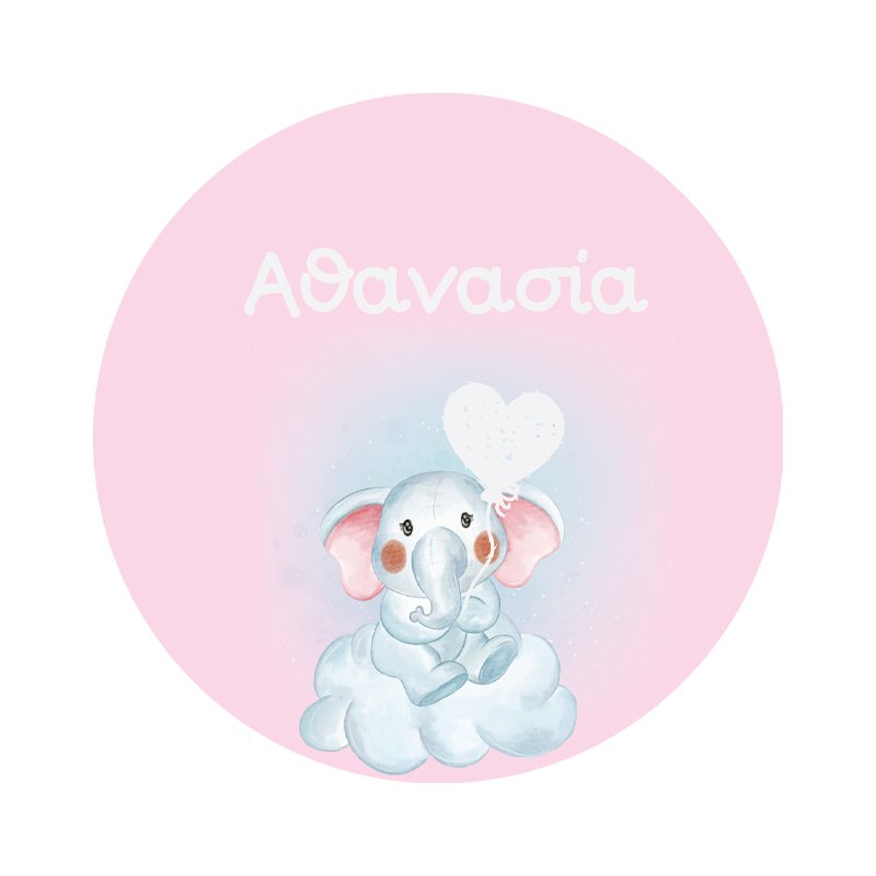 Στρογγυλή Ετικέτα με Θέμα Ελεφαντάκι 60mm