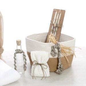 ✔ Σετ λαδιού με μπουκαλάκι, σαπούνι και κεράκια, διακοσμημένα με φυσικά σχοινιά.