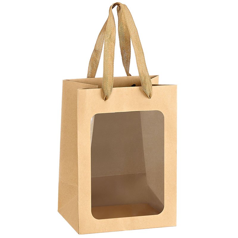 Τσάντα με παράθυρο και ιμάντα σε φυσικό χρώμα κατασκευασμένη από εξαιρετικής ποιότητας χαρτί.