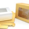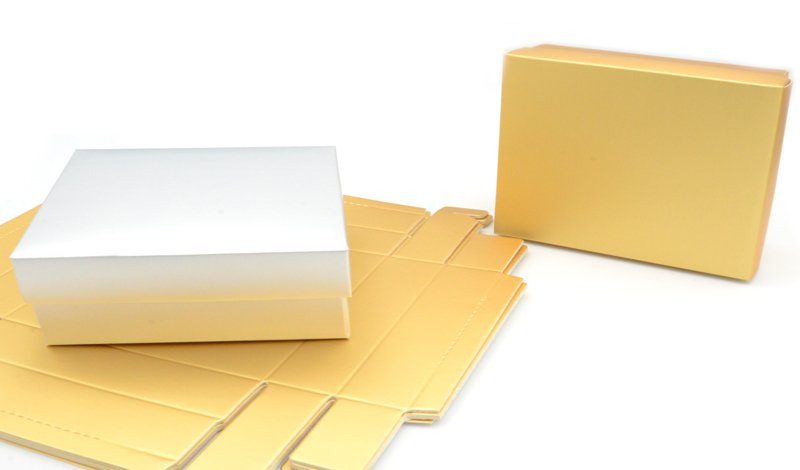 Στην ψυχολογία του μάρκετινγκ το χρυσό και το ασημί χρώμα συνδέονται άμεσα με την επιτυχία και την υψηλή ποιότητα αυξάνοντας την αντιληπτή αξία του προϊόντος πριν καν ανοιχτεί. Ένα άγνωστο τεχνικό πλεονέκτημα της μεταλλικής επίστρωσης που χρησιμοποιούμε είναι ότι λειτουργεί ως πρόσθετο προστατευτικό στρώμα ενάντια στην υγρασία διατηρώντας το χαρτόνι στιβαρό ακόμα και σε μεταβαλλόμενες συνθήκες. Το χαρτόνι των τριακοσίων πενήντα γραμμαρίων επιλέγεται ειδικά για μεγάλες διαστάσεις καθώς αποτρέπει το φαινόμενο της κοιλιάς στο κάτω μέρος του κουτιού όταν τοποθετούνται αντικείμενα με βάρος. Επιπλέον η λεία επιφάνεια του είναι ιδανική για την τοποθέτηση διάφανων ετικετών ή κορδελών που αναδεικνύονται υπέροχα πάνω στο μεταλλικό φόντο.