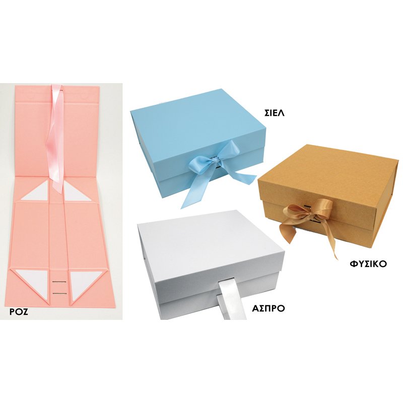 Χάρτινο Κουτί με Σατέν Κορδέλα σε Τέσσερα Χρώματα