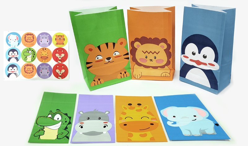 Επαγγελματικό Σετ Χάρτινα Τσαντάκια Χωρίς Χεράκια με Σχέδια Ζωάκια και Συνοδευτικά Αυτοκόλλητα για Πάρτι και Εκδηλώσεις