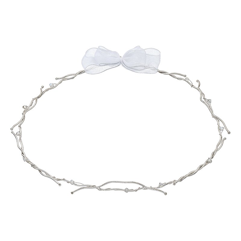Χειροποίητα, επάργυρα και επιπλατινωμένα ασημί στέφανα γάμου εξαιρετικής ποιότητας με λευκό φιόγκο και χάντρες.