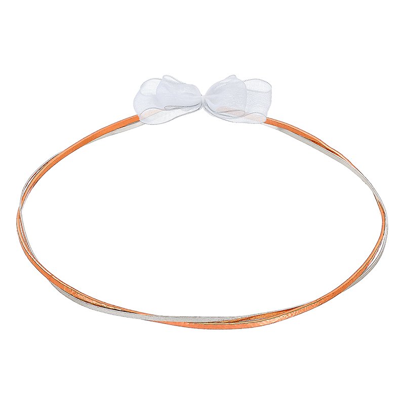 Χειροποίητα, επάργυρα και επιπλατινωμένα στέφανα γάμου εξαιρετικής ποιότητας σε ροζ χρυσό και ασημί χρώμα με λευκό φιόγκο.