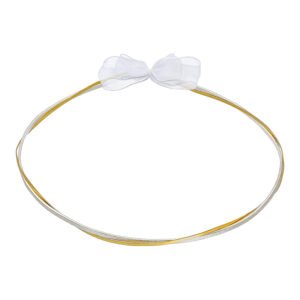 Χειροποίητα στέφανα γάμου με λευκό φιόγκο σε χρυσό και ασημί χρώμα.