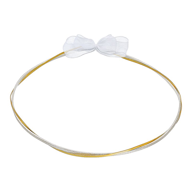 Χειροποίητα, επάργυρα και επιπλατινωμένα στέφανα γάμου εξαιρετικής ποιότητας με λευκό φιόγκο σε χρυσό και ασημί χρώμα.