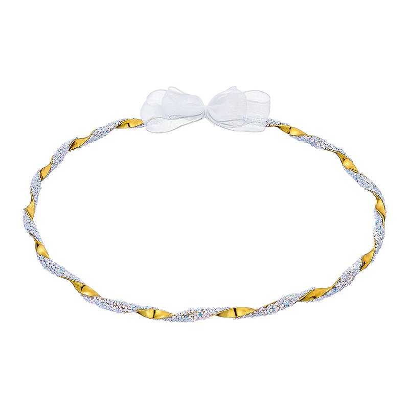 Χειροποίητα, επάργυρα και επιπλατινωμένα στέφανα γάμου εξαιρετικής ποιότητας με λευκό φιόγκο σε χρυσό χρώμα.