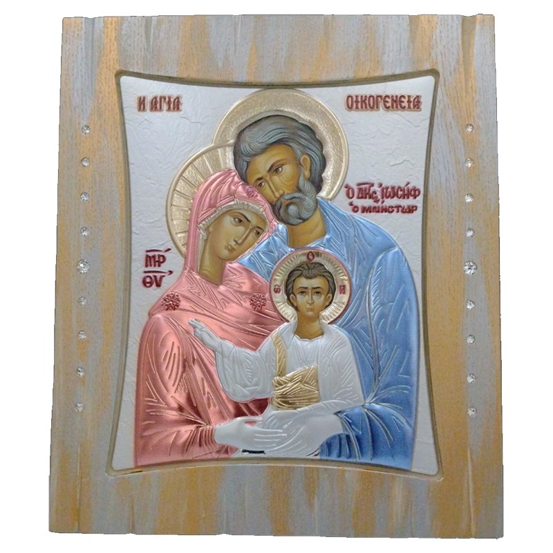 Αποκτήστε ένα σύμβολο οικογενειακής αγάπης και προστασίας με αυτή την εξαιρετική, χειροποίητη εικόνα της Αγίας Οικογένειας. Φιλοτεχνημένη με ασημένια επένδυση, πάνω σε φυσικό ξύλο και διακοσμημένη με λαμπερές πέτρες Swarovski, αυτή η εικόνα αποτελεί ένα μοναδικό έργο τέχνης που φέρνει το φως και την ευλογία του Ιησού, της Παναγίας και του Αγίου Ιωσήφ στον χώρο σας.