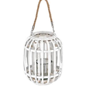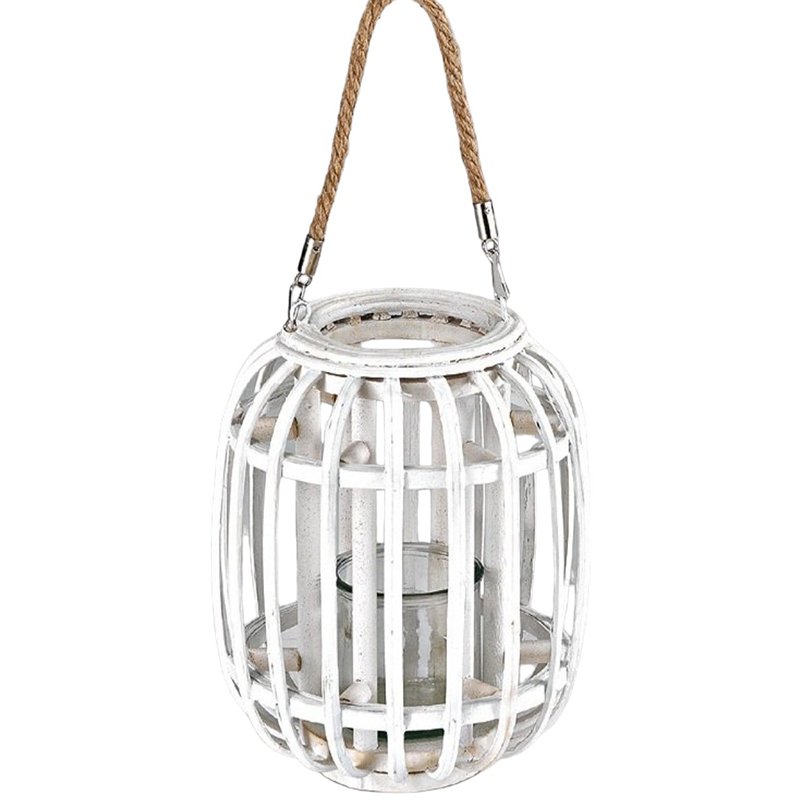 Χειροποίητο λευκό φανάρι από πλεκτό ξύλο κατασκευασμένο από εξαιρετικής ποιότητας υλικά.