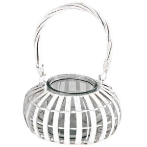 Χειροποίητο λευκό φανάρι από πλεκτό ξύλο με χερούλι κατασκευασμένο από εξαιρετικής ποιότητας υλικά.