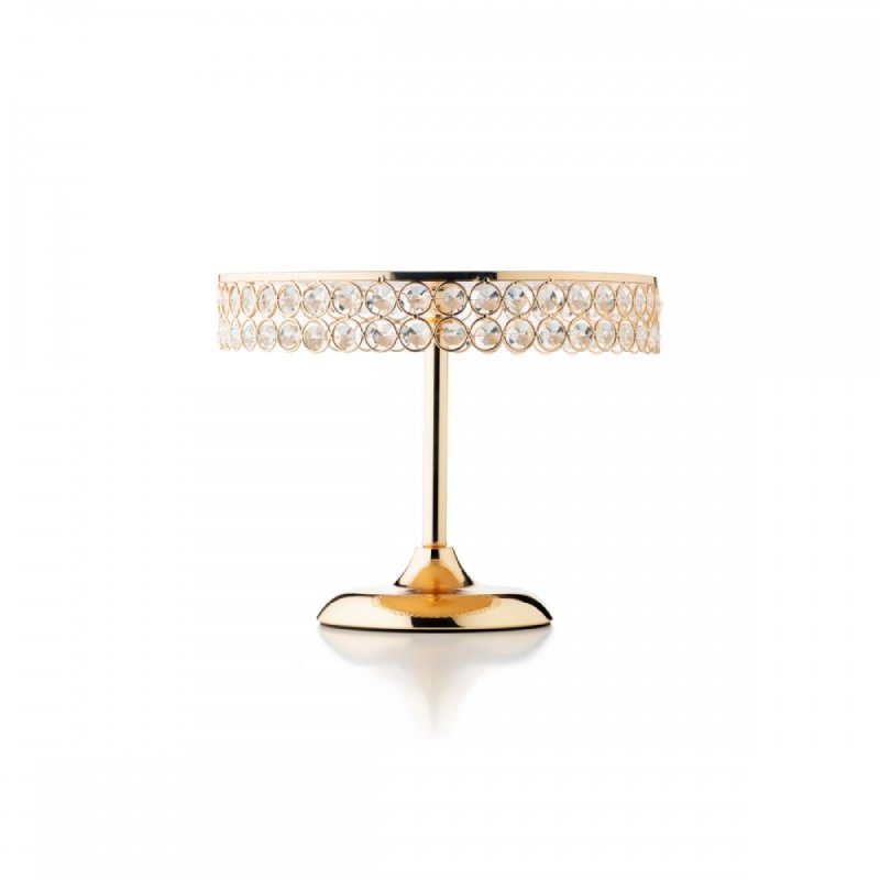 Τουρτιέρα σε χρυσό χρώμα με πόδι κατασκευασμένη από εξαιρετικής ποιότητας μέταλλο και γυαλί. Ιδανική για χρήση σε διοργανώσεις, βαπτίσεις και γάμους.