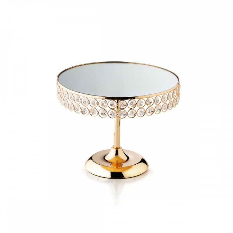 Τουρτιέρα με πόδι σε χρυσό χρώμα κατασκευασμένη από εξαιρετικής ποιότητας μέταλλο και γυαλί με ιδιαίτερα κομψό σχεδιασμό.