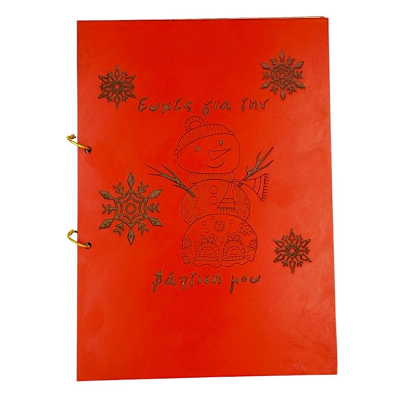 Χριστουγεννιάτικο Ξύλινο Βιβλίο Ευχών σε Κόκκινο Χρώμα με Θέμα Χιονάνθρωπος