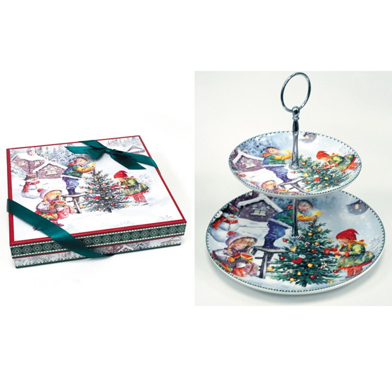 Πορσελάνινος διώροφος δίσκος κατασκευασμένος από εξαιρετικής ποιότητας υλικά με ιδιαίτερα κομψό σχεδιασμό.