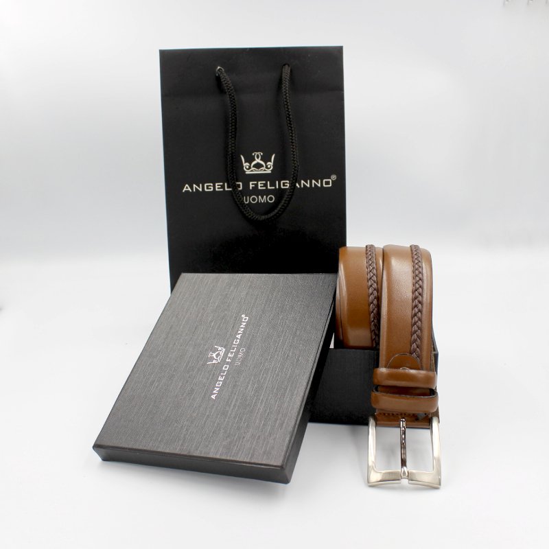 Ανδρική δερμάτινη ζώνη Angelo Feliganno Uomo καφέ, με μεταλλική αγκράφα.